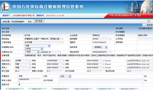 Sinopec Supplier Registration Information
